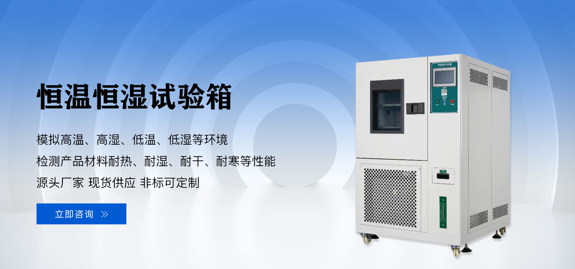 恒溫恒濕箱又稱恒溫恒濕試驗箱、恒溫恒濕試驗機,模擬高低溫濕熱等環(huán)境,用于檢測材料在各種環(huán)境下性能的設(shè)備及試驗各種材料耐熱、耐寒、耐干性能。適用于汽車、通訊、電子、電工、橡塑等行業(yè)。